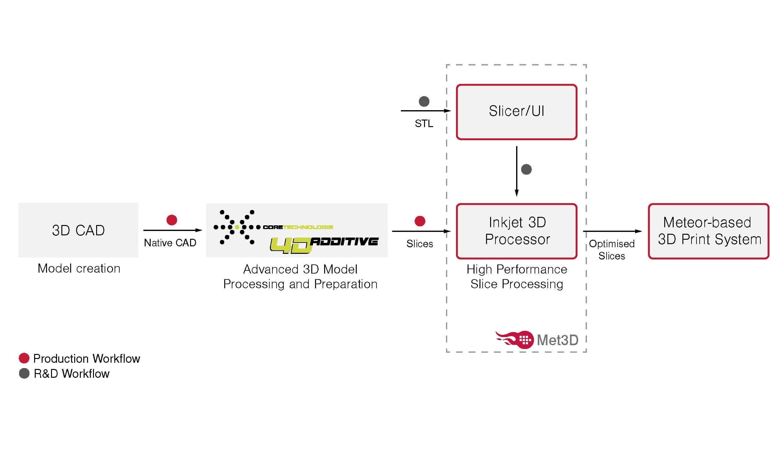 „Als Ergebnis unserer Zusammenarbeit mit Meteor lassen sich Binder- und Material-Jetting-Systeme mit Meteor-Hardware und -Software problemlos in den von 4D_Additive bereitgestellten Industriestandard-Workflow integrieren und ermöglichen die Verarbeitung präziser nativer 3D-Modelle aller großen CAD-Softwareanbieter.“