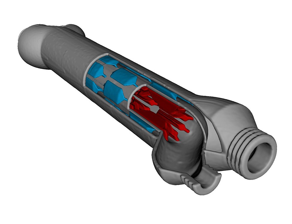 Das Team untersuchte die Optimierung eines Rohr-in-Rohr-Wärmetauschers mit ihrer 3D-Konstruktionssoftware. Diese Wärmetauscher kommen oft in Trinkwassersystemen und Gebäudeenergiesystemen vor. Das Innenrohr ist dabei in einem Außenrohr verschachtelt. Sie stellen ein Design her, das einen Satz integrierter Rippen an der Innenseite der Rohre hat. So etwas lässt sich nur mit 3D-Druck realisieren.