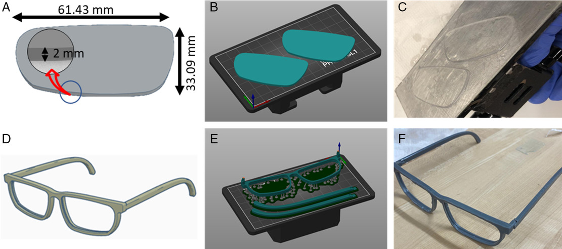 Die Forscher haben einen Brillenprototypen mit dem 3D-CAD-Programm SOLIDWORKS entworfen und druckten ihn aus ASIGA DentaClear und Grey Resin auf einem Prusa SL1S 3D-Drucker. Sie haben erkannt, dass die Aushärtungszeit und Schichtdicke für das Erreichen optimierter optischer und mechanischer Eigenschaften entscheidend sind. Eine Druckzeit von sechs Sekunden pro Schicht und eine Dicke von 25 Mikrometern sind ideal.