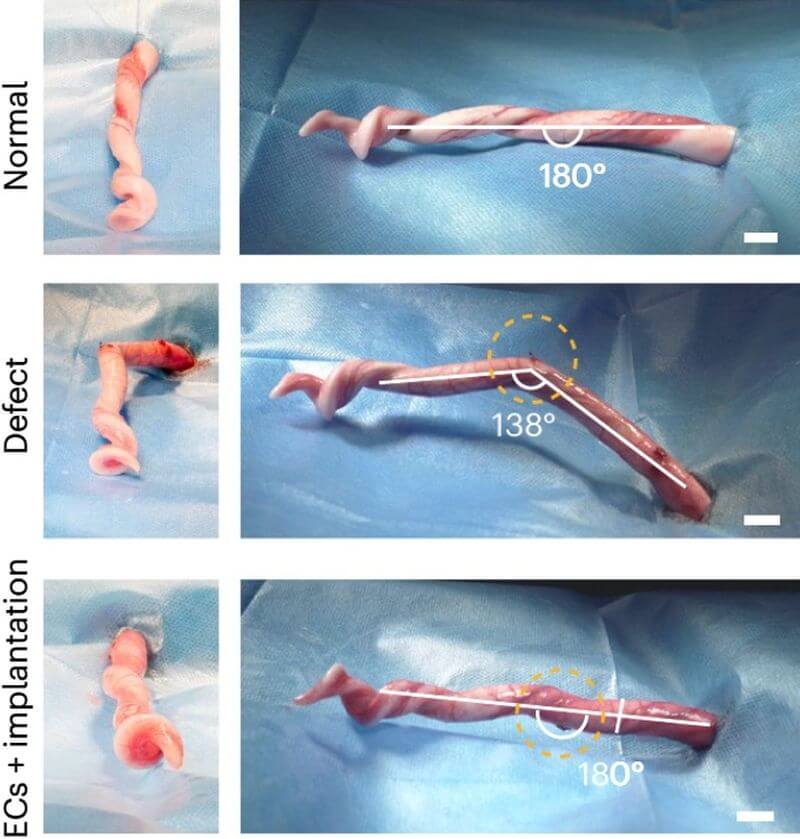 Um die Biokompatibilität zu verbessern, wurden einige Implantate mit endothelialen Zellen der Tiere besiedelt. Diese Vorgehensweise führte zu einer schnelleren Geweberegeneration und verbesserten die Funktionalität der Implantate. Nach einigen Wochen konnten die behandelten Tiere eine normale Erektion aufrechterhalten und sich fortpflanzen.