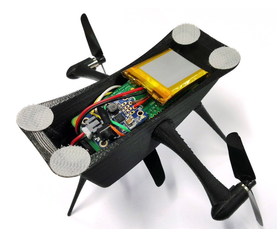 Die Gondel, die sich unter der Mikrofolienhülle befindet, wurde in 3D gedruckt und mit Klettbändern befestigt. Sie enthält einen Raspberry Pi Zero W, die Motortreiber, einen Satz Gleichstrommotoren, einen Spannungsregler und drei Propeller. Eine Kamera sorgt für einen dynamischen Betrachtungswinkel. Insgesamt entstanden Kosten in Höhe von rund 90 USD (83 EUR).
