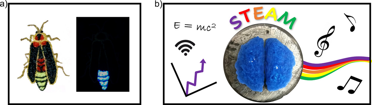 Um ihre Biotinte zu testen, druckten sie ein im Dunkeln leuchtendes Glühwürmchen und das Modell eines Gehirns (beides im Bild zu sehen)(Bild © Pacific Northwest National Laboratory).