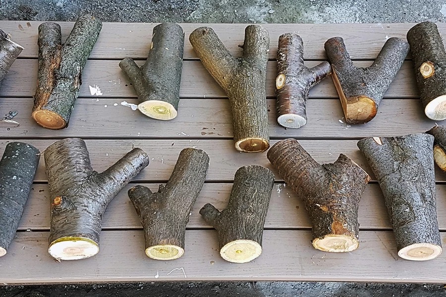 Assoc. Prof. Caitlin Mueller, die das Forschungsprojekt leitet, begann mit ihrem Team Abfallholzabschnitte einer bereits gefällten Baumgruppe in der Stadt Somerville in Massachusetts zu sammeln. Die Forscher konzentrierten sich auf die Y-förmigen Gabeln, bei denen sich der Stamm oder ein großer Ast in zwei Teile teilt. Diese Stücke werden oft zu Mulch zerkleinert oder verbrannt.