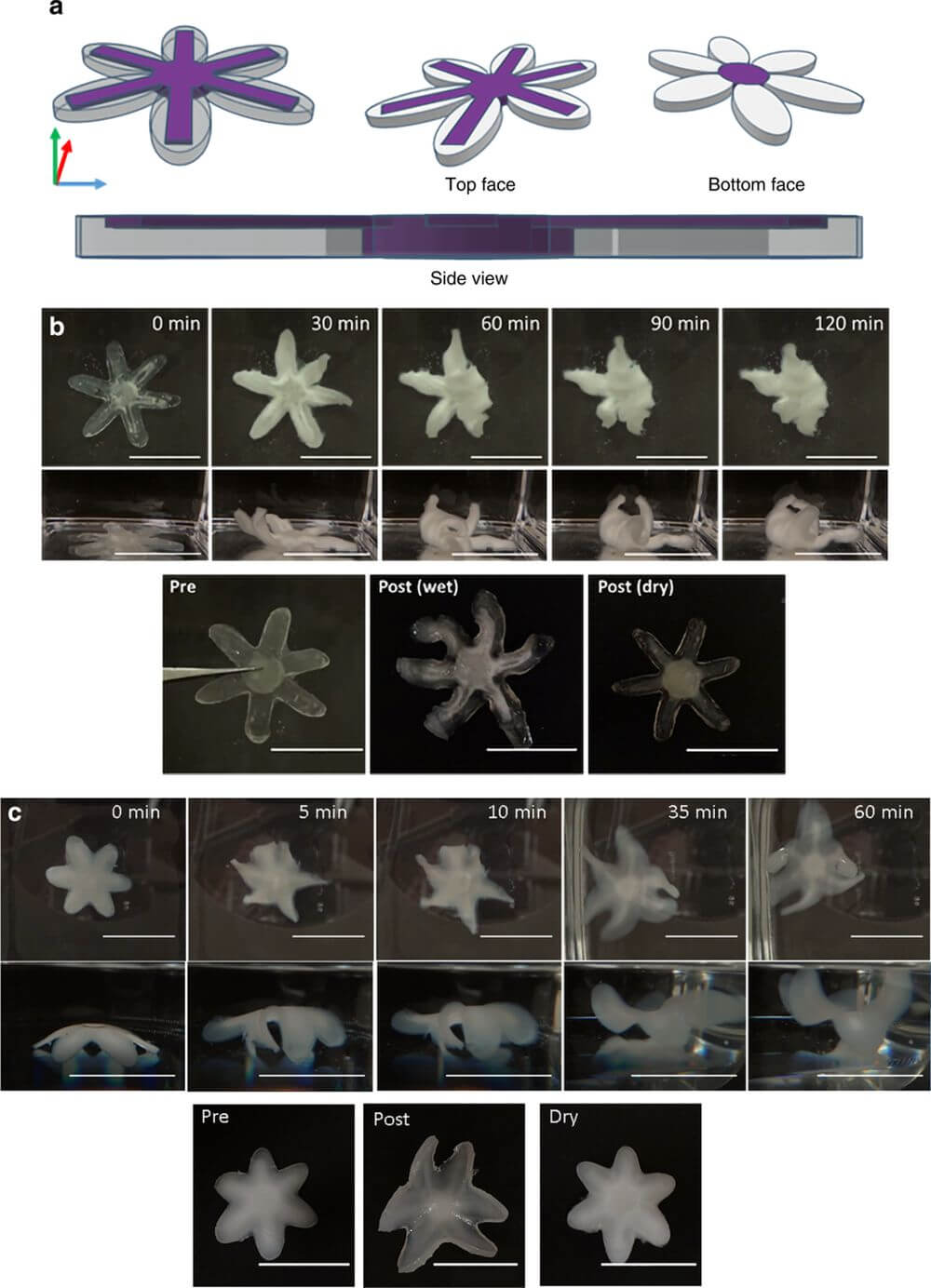 (b Schwellungsergebnisse eines Seestern in Wasser, das mit der HEA-1-MASC-Formulierung gedruckt wurde. Maßstabsbalken = 25 mm.