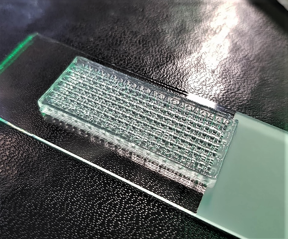 Der BIO X – Biodrucker von Cellink ist mit einem pneumatischen Druckkopf ausgestattet und wurde für den Druck von 3D-Gerüsten mit den Einkomponenten-Nanozellulosetinten verwendet. Um ein starkes Schrumpfen zu vermeiden, wurden die Strukturen gefriergetrocknet, und unter UV-Licht sterilisiert. Das Gerüst war fertig und die Proben wurden mit Zellen besät.