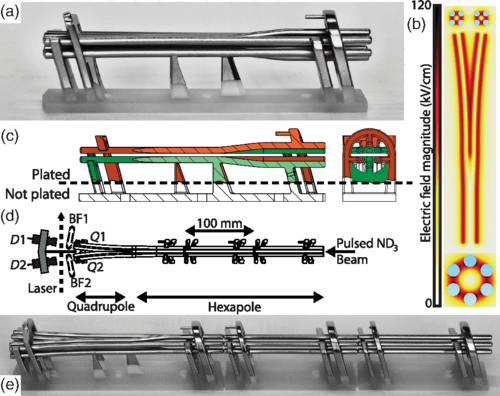 Der molekulare Strahlenteiler wurde mit einem Stereolithographie-3D-Drucker und der Metallbeschichtungstechnik (Galvanisierung) hergestellt. Im wissenschaftlichen Rahmen wurde die Galvanisierung vorher noch nicht angewendet. Gleich im Anschluss des 3D-Drucks der Teile, wurden diese an die Schweizer Firma Galvotec zur Galvanisierung versandt. Durch diesen Vorgang wurden einige Bereiche der Elektrodenstäbe leitend, andere isolierend. Das ist ein entscheidender Schritt für die Herstellung des Strahlenteilers, da in der Vorrichtung zwei elektrisch unabhängige Elektroden benötigt werden. Dadurch werden die Molekularstrahlen aufgespalten.