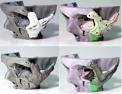 Die verschiedene 3D-gedruckten Knochenmodelle wurden nun am modellierten Schädel des Patienten passgenau platziert. Das aus Sicht der Mediziner und Wissenschaftler geeignetste Modell wurde anschließend als medizinisches Titan-Implantat angefertigt und in einer weiteren Operation für Power im Gesicht verpflanzt.