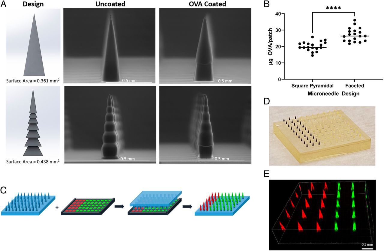 Eine an Tieren durchgeführte Studie ergab, dass die resultierende Immunantwort des Pflasters zehnmal stärker ist, als wenn der Impfstoff über den Armmuskel injiziert wird. Die Ergebnisse der Arbeit zeigt außerdem, dass das Impfstoffpflaster eine signifikante T-Zell- und Antigen-spezifische Antikörperantwort erzeugt, die 50-mal stärker war als eine subkutane Injektion unter die Haut. Für den Erfolg machen die Forscher ihre 3D-gedruckten Mikronadeln, die auf dem Polymerpflaster aufgereiht sind, verantwortlich.