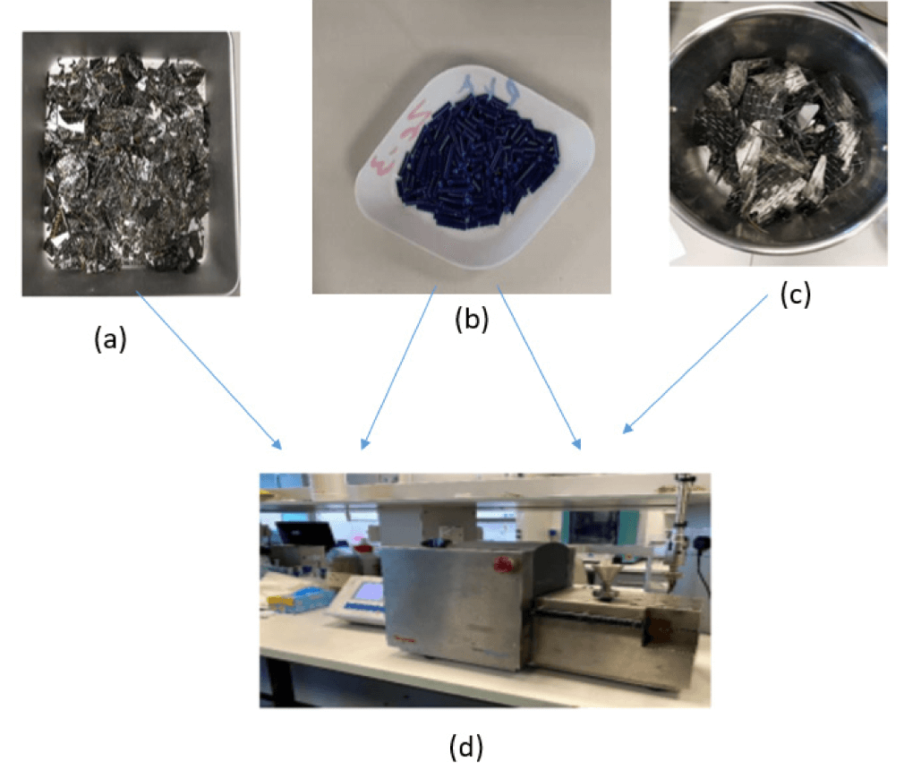 Die Forscher der Universität der VAE sammelten 3D-gedrucktes PLA aus Prototyping-Laboren der Universität. Sie verwendeten Abfallmaterial von CF-Prepreg-Platten und Kohlefaserplatten, um Kohlefaserelemente der Verbundwerkstoffe zu erhalten. Der PLA- und Kohlefaserabfall wurde zerkleinert, gemahlen, gemischt und in unterschiedlichen Prozentsätzen von Additiven schmelzgemischt. Anschließend pressten sie die Formulierungen zu Dogbone-Proben und verwendeten eine Testmaschine, um die mechanische Leistung der recycelten Verbundwerkstoffe zu charakterisieren.