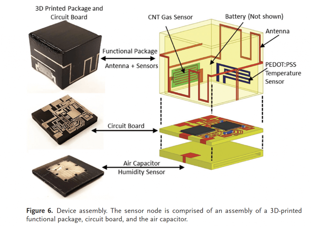 Bei einer Proof-of-Concept Studie wurde der 3D-Druck als kostengünstige Herstellungsmethode für die Sensoren eruiert. Diese Funksensoren können unter extremen Bedingungen wie Waldbrände oder Fabriklecks eingesetzt werden. Durch die Zentrale Antenne an den Sensoren, die sich mit dem nächsten Funkmasten verbinden, bekommt man einen kurzen und schnellen Kommunikationsweg.