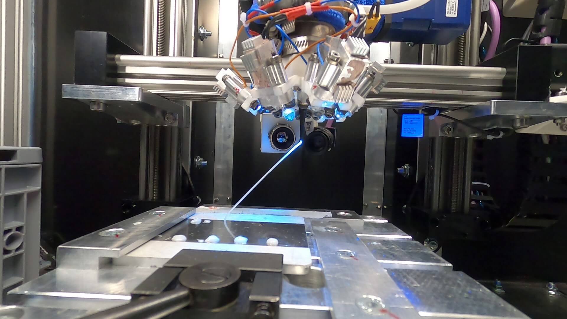Zu den Hauptparametern des Druckprozesses gehören die Druckgeschwindigkeit, die Extrusionsrate des Harzes, die UV-Lichtintensität und der Bewegungspfad der Düsenspitze. Neben den ViscoTec Druckköpfen haben auch Komponenten wie konische UV-blockende Dosiernadeln von Vieweg und ein Klebstoff von Delo zum Erfolg beigetragen.
