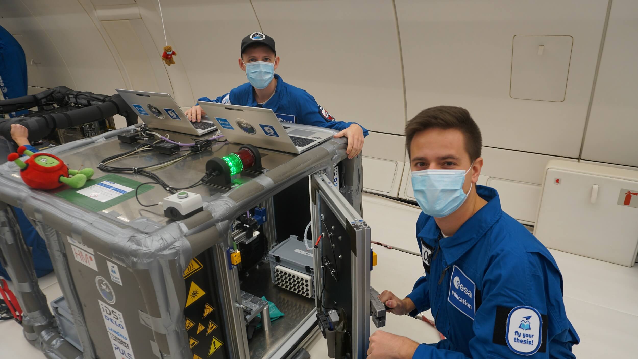 Das AIMIS-FYT Team erklärt, dass sie mit den Ergebnissen der Parabelflüge sehr zufrieden sind. Sie hatten mit manchen Problemen zu kämpfen, konnten aber so gut wie alle Experimente wie geplant umsetzen. Es zeigte sich, dass der Druckprozess unter Schwerelosigkeitsbedingungen funktioniert.