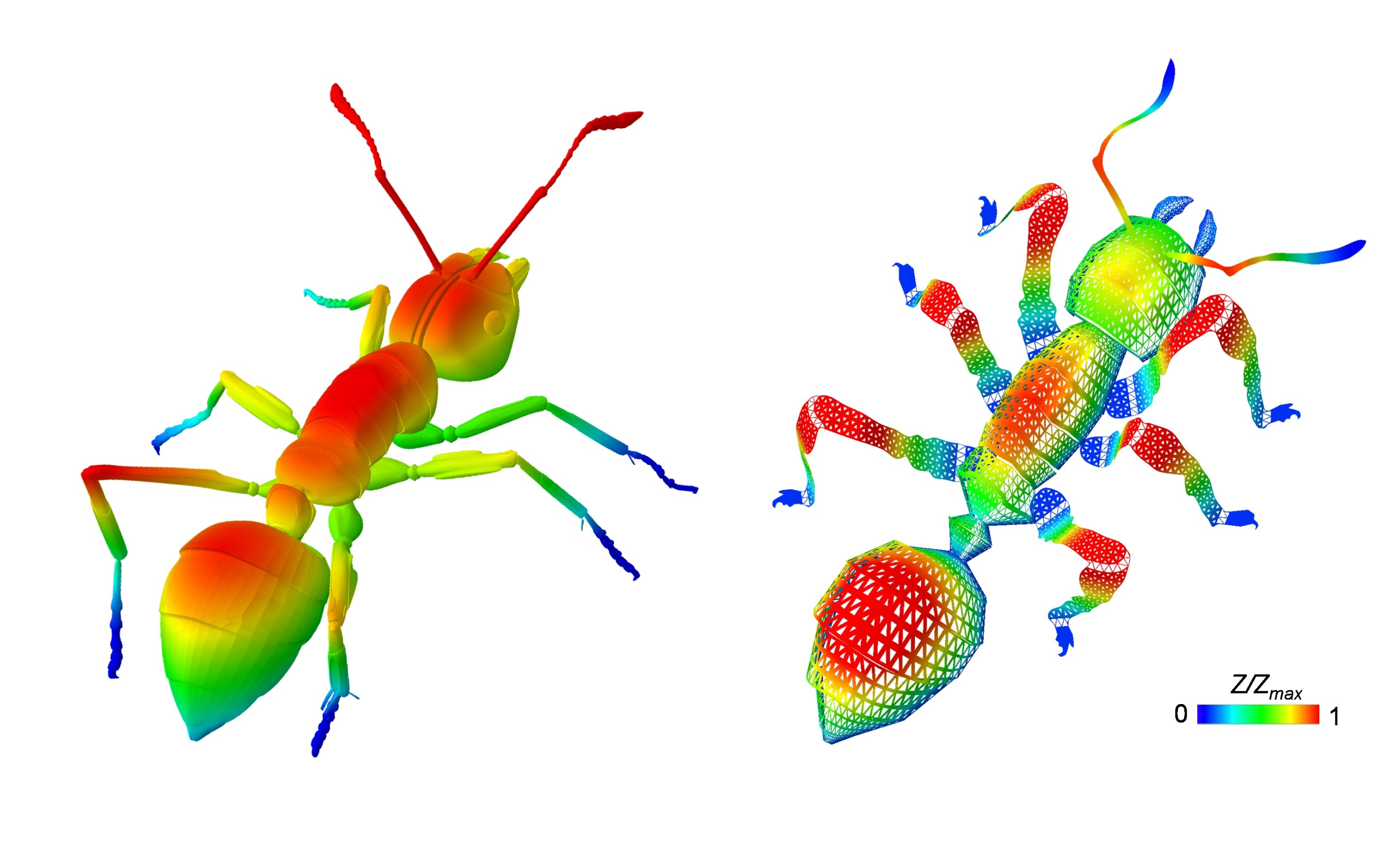 In der Natur entstehen einzigartige poröse Oberflächenstrukturen durch die Anordnung von Zellen. Es ist unmöglich, den bemerkenswerte Grad an Oberflächenvariabilität mit einzigartigen sichtbaren Merkmalen und spezifischen Eigenschaften, wie zum Beispiel wasserabweisend, mit der gegenwärtigen 3D-Druck-Technologie nachzubilden. Mit seinen Forschungen und Versuchen kam das Team der Nachahmung allerdings jetzt einen Schritt näher. Es hat eine Möglichkeit entwickelt, Strukturen nahezu reproduzierbar herzustellen. Die Forscher bildeten die Anordnung der Zellen nach, indem sie digitale Gitter aus winzigen Dreiecken und Bändern erstellten. Auf ihre inverse Designmethode (Theorie der gekrümmten Balkenverformung) folgte die Entwicklung einer Anwendung, um mithilfe ihrer digitalen Gitter gewünschte Formen zu erzeugen.