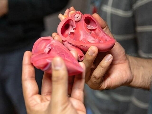 Klinischer 3D-Druck bedeutet, dass es sich nicht nur um ein Plastikmodell handelt, sondern um die Nachbildung eines lebenden Herzens oder eines anderen Körperteils eines echten Patienten – genau in Größe und Form bis auf einen Hundertstel Zentimeter. Die Genauigkeit ermöglicht es Chirurgen, Repliken von Herzen, anderen Organen und Knochen zu verwenden, um Operationen auf eine Weise zu visualisieren und zu üben, die noch vor wenigen Jahren unmöglich war.