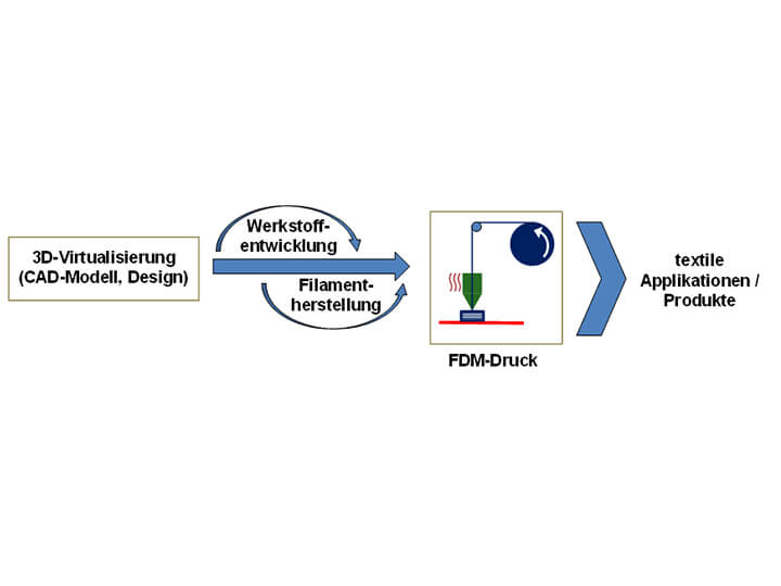 Zusammen mit Partnern aus Forschung und Industrie werden in dem auf drei Jahre festgelegten Projekt Funktionstextilien für technische Anwendungen entwickelt, die (auch) mit einem 3D-Drucker herstellbar sind.