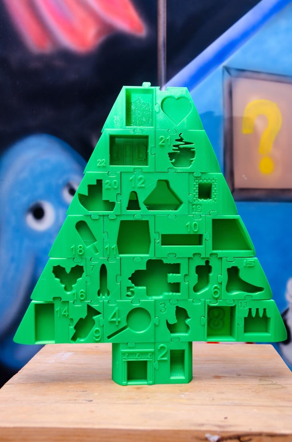 Die leeren Blockmodelle gingen an seine Makerfreunde. Jeder konnte für einen Tag des 3D-gedruckten Adventskalenders etwas beisteuern. Am Ende entstand ein bunter Weihnachtsbaum mit 24 einzigartigen und lustigen Spielzeugen. Vielleicht wird ja der eine oder andere Maker davon inspiriert und entscheidet sich im nächsten Jahr auch für solch einen 3D-gedruckten Adventskalender. Eine Abwechslung zur jährlich wiederkehrenden Schokolade-Version.