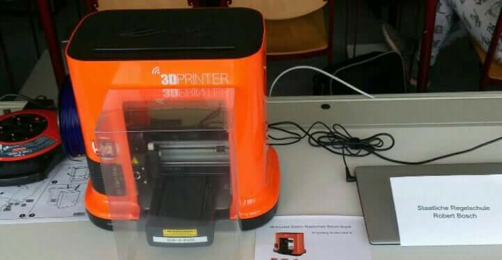 Diesen XYZ Printing da Vinci Mini w 3D-Drucker bekam die Schule vor Kurzem überreicht (Bild © Facebook/Regelschule „Robert Bosch“ Arnstadt).