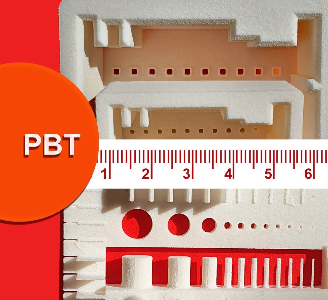 Polybutylenterephthalat besitzt Creabis zufolge im Vergleich zu teilkristallinem PBT etwas geringere Festigkeit vor allem bei tieferen Temperaturen. Außerdem bietet es mehr Schlagzähigkeit. Das PBT empfiehlt sich aufgrund seiner Eigenschaften wie der guten Oberflächenqualität, Detailauflösung und Maßhaltigkeit. PBT hat eine sehr geringe Kriechverformungsneigung und hohe Abriebfestigkeit. Das Material weist eine hohe Temperaturbeständigkeit auf und kann gut glasgefülltes Polyamid ersetzen.