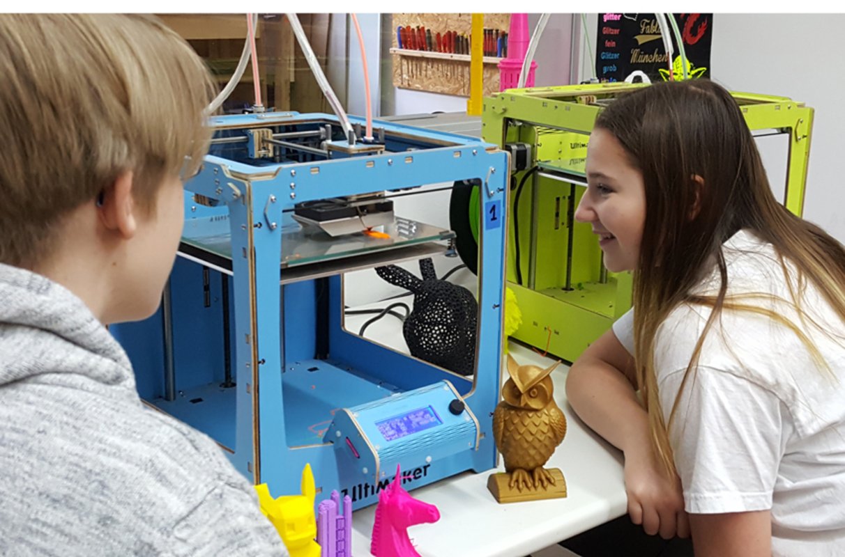 Nach der Fertigstellung des Designs wird die 3D-Datei per Speicherkarte auf einen 3D-Drucker übertragen. Die Roboterköpfe werden schichtweise aus Kunststoff hergestellt. Die Batteriehalterung wird mit dem Motor zusammengelötet. Nach drei Stunden werden alle Bestandteile des Roboters zusammengebaut. Alle sechs Kinder zeigen sich von ihren selbstgebauten Tanzrobotern begeistert und wollen auf jeden Fall öfter im FabLab München vorbeischauen, heißt es in einem Videobeitrag vom Bayerischen Rundfunk.