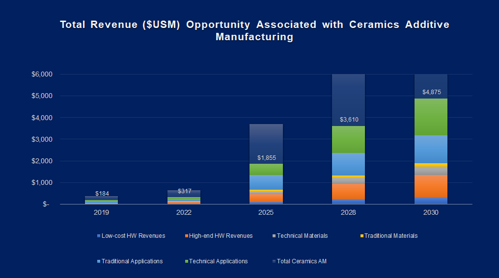 SmarTech Analysis geht in seinem neuesten Bericht über den 3D-Druck-Markt mit Keramik davon aus, dass der Umsatz bis 2030 eine Höhe von 4,8 Mrd. USD (4,44 Mrd. EUR) erreichen wird. Trotz der aktuellen schwierigen wirtschaftlichen Lage sollen technische und traditionelle Endteile in diesem Zeitraum den Markt mittel- und langfristig voranbringen, wie SmarTech Analysis in einer Pressemitteilung erklärt.