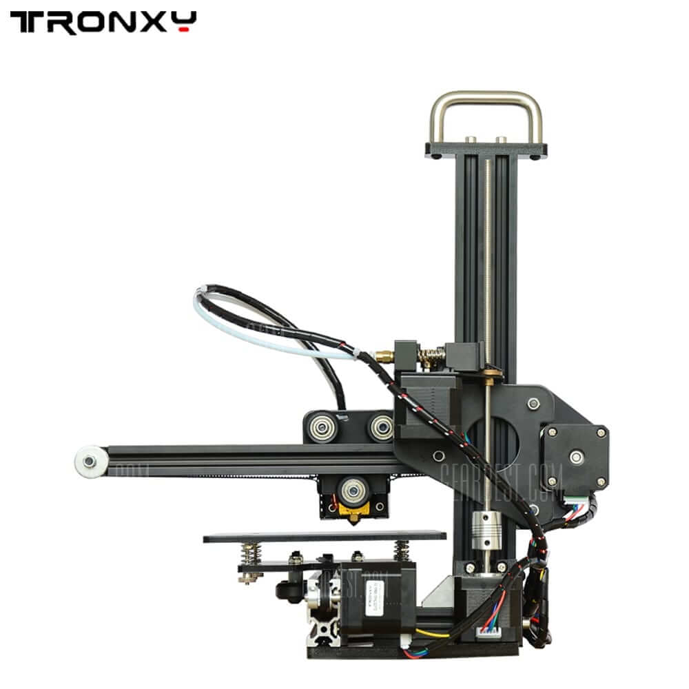Der Tronxy X1 3D-Drucker lässt sich anhand der Aufbauanleitung sowie einiger Youtube Video-Tutorials relativ einfach zusammenbauen. Er verfügt über ein Bauvolumen von 15 x 15 x 15 Zentimetern und wartet mit einer Schichtauflösung von 0,1 bis 0,5 mm auf. Zudem ist er mit einem LCD-Monitor ausgestattet, an dem Sie leicht Änderungen an den Einstellungen vornehmen können. Er kann PLA- und ABS-Filamente verarbeiten und unterstützt die Betriebssysteme Windows XP, Windows 7 und Mac.