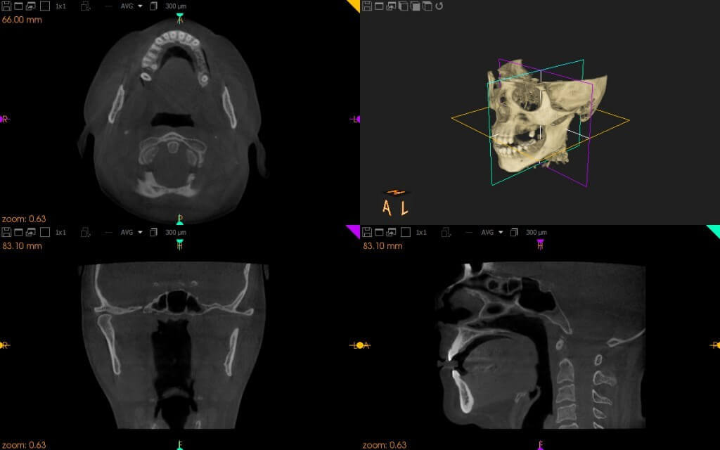 Durch die 3D-CT-Diagnostik ist es möglich, auch exakte Messungen bezüglich der Knochenbreite und Knochendichte vorzunehmen, in Problemfällen Wölbungen und Knochenhöhlen auf einzelnen Schichtaufnahmen erkennbar zu machen, sowie die Position und den Verlauf der Nervenbahnen zu veranschaulichen. Man erhält eine überlagerungsfreie Darstellung und sieht alles Verborgene, was bei der Planung von implantologischen Eingriffen enorm wichtig ist.