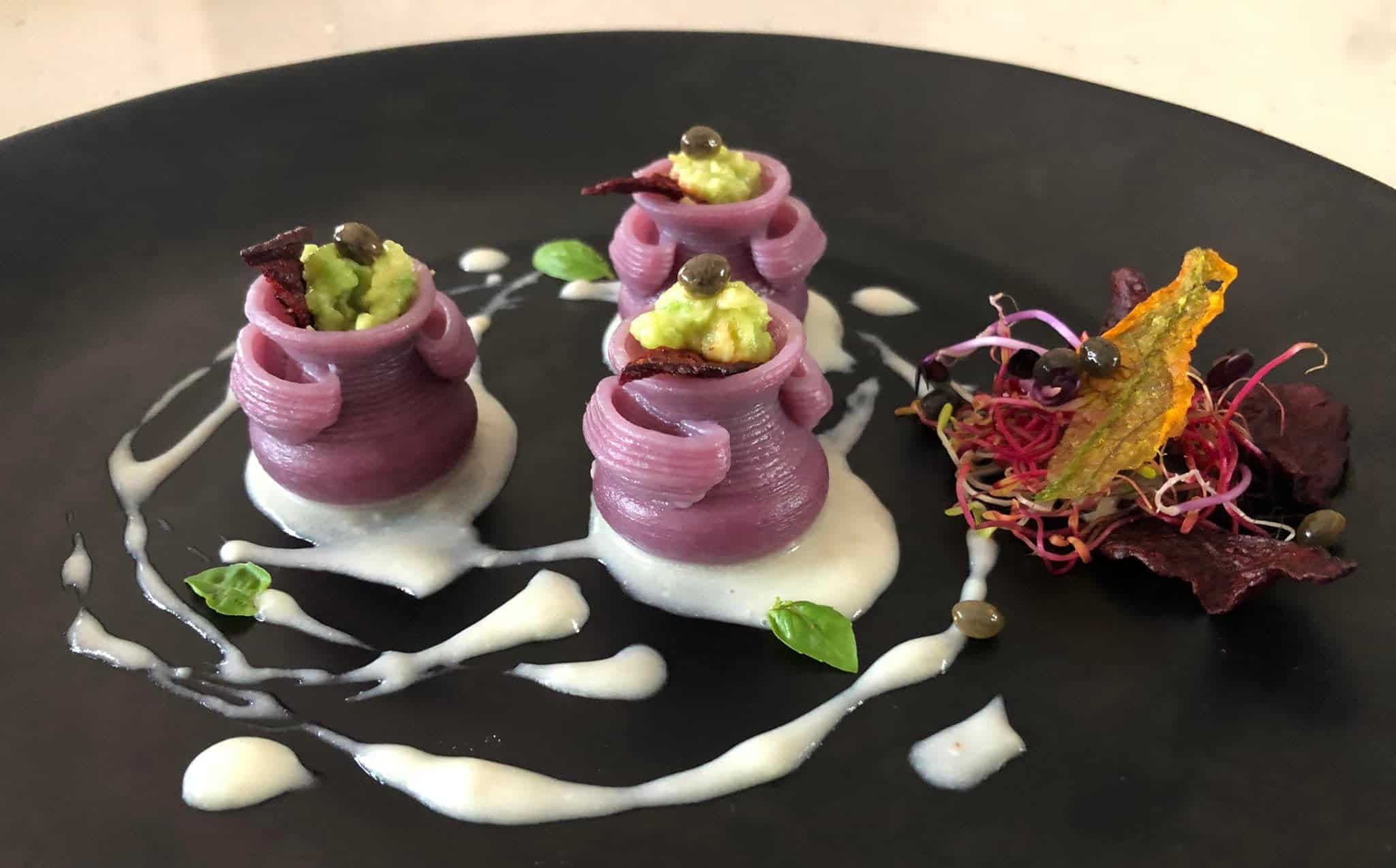 Die Preise für 12 große Stücke liegen zwischen 25 und 35 US-Dollar (23,4 und 32,7 Euro). Die Küchenchefin Teresa Irena hat zum Beispiel ein 3D-gedrucktes Nudelgericht aus 3D-gedruckter Pasta, Avocado, roter Bete, Gorgonzola, Lacticello, Rübenchips, Papayakernen und extra nativem Olivenöl hergestellt. Dafür verwendete sie die Nudelform Kalpis Love Edition von BluRhapsody (12 Stück für 31,90 €) aus Hartweizengrieß, Wasser und natürlichem Extrakt mit färbenden Eigenschaften.