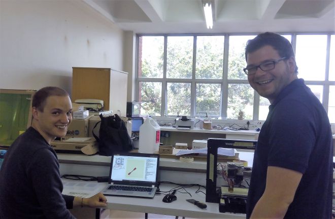 Von Professor du Preez, dem wissenschaftliche Leiter des Centre for Rapid Prototyping and Manufacturing (CRPM) ist und dem Direktor des CRPM, Gerrie Booysen, wurden die Einrichtungen der CUT im Bereich Leichtbau und additiver Fertigung vorgestellt. Diskussionsthema waren mögliche gemeinsame Forschungsfelder. Beide Bildungseinrichtungen zeigen sich erfreut über eine eventuelle Zusammenarbeit.