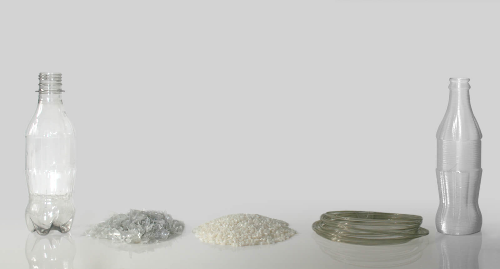 Die simplen, aber für die 3D-Drucktechnik äußerst nutzvollen Eigenschaften des PET sind ausschlaggebend dafür, dass die Entwickler auf der Suche nach neuen Filamenten, ganz schnell fündig wurden: PET ist leicht, robust, farbenlos und vor allem wiederverwertbar – perfekt für die Anwendung mit 3D-Druckern also. Dabei weist das recycelte Material des Unternehmens genau die gleichen Eigenschaften, wie PET, das noch nicht verwertet wurde auf und ist zudem noch 70 Prozent günstiger in der Herstellung.