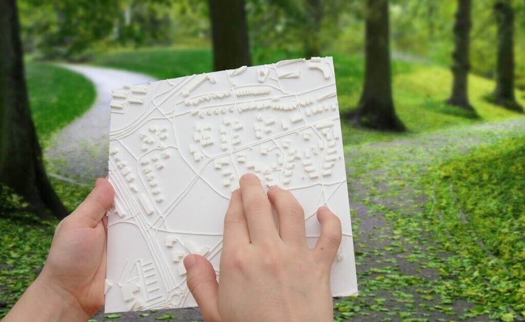 Der finnische Designer Samuli Kärkkäinen hat mit Touch Mapper ein Tool entwickelt, welches dazu dient, tastbare Karten mit dem 3D-Drucker herzustellen. Die Daten für die Karten basieren auf OpenStreetMap. Vor dem 3D-Druck muss die Adresse eingegeben werden, worauf die entsprechende Karte angezeigt wird. Die Karte kann in die gewünschte Position gedreht werden und anschließend wird auf „Create Tactile Map“ geklickt. Das 3D-Modell der Karte wird angezeigt und kann mit dem eigenen 3D-Drucker zu Hause ausgedruckt werden.
