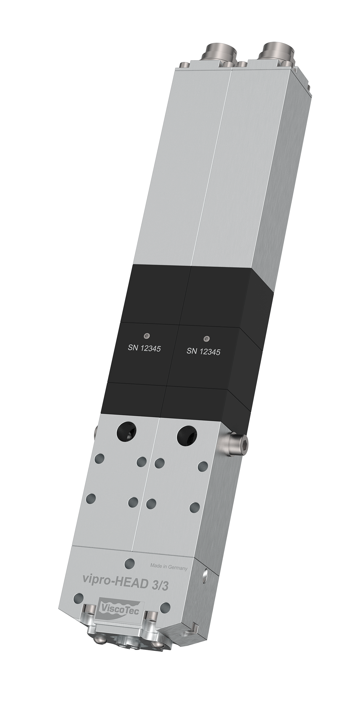 Der 2K-Druckkopf vipro-HEAD 3/3 bzw. 5/5, erhältlich in zwei Größen, wird erstmals auf der formnext, der internationalen Fachmesse für die additive Fertigung, vorgestellt. Die parallel unabhängig voneinander laufenden Motore empfangen Signale direkt vom 3D-Drucker. Je nach Kundenwunsch können Entlüftungsschrauben an den Druckkopf adaptiert werden, um die Entlüftung bei Inbetriebnahme zu erleichtern.