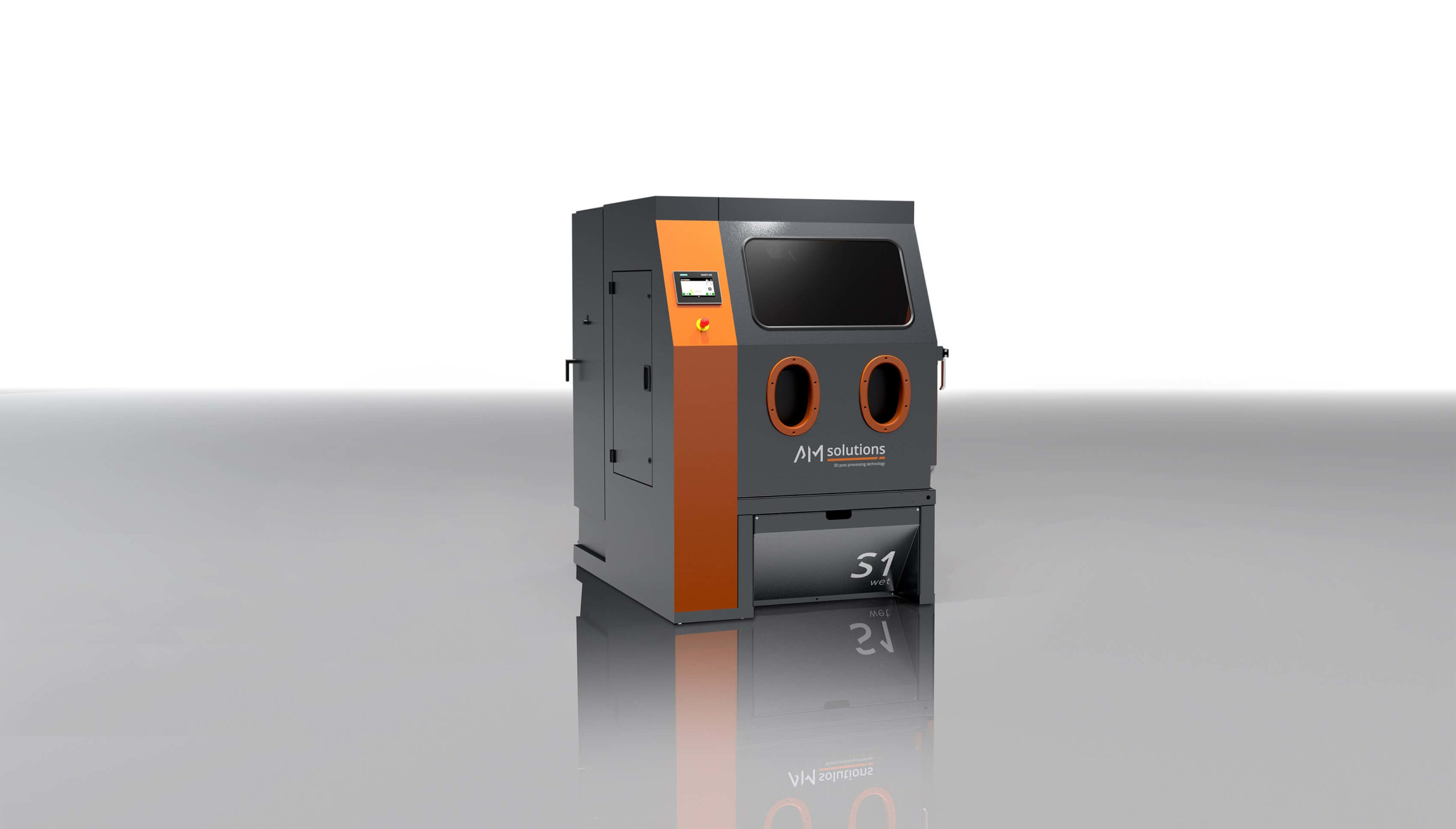 - Die S1 Wet Maschine unterstützt den Anwender beim Entfernen von Pulverresten und der Oberflächenhomogenisierung und Glättung von metallischen 3D-Bauteilen.