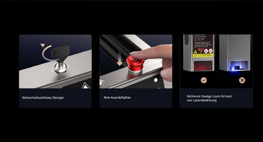 Beim Erhitzen von Edelstahl durch einen starken Laserstrahl, reagiert die Metalloberfläche und erzeugt hunderte von Farben. Die integrierte Air Assist-Funktion des Falcon2 40W kann manuell oder über die LightBurn-Software angepasst werden. Dadurch wird der Rauch entfernt und die Laserlinse geschützt, um saubere Ergebnisse zu gewährleisten. Creality legt großen Wert auf Sicherheit. Die Schutzabdeckung des Laserkopfes besteht aus hocheffizientem Farbfilterglasmaterial, um Blendungen durch den Laser zu vermeiden. Darüber hinaus verfügt der Falcon2 40W über drei Überwachungssysteme und fünf Sicherheitsmaßnahmen, einschließlich Luftstrom-, Linsen- und Rahmenüberwachung, bidirektionaler Endschalter, aktive Stoppfunktion, Sicherheitsschloss-Design und Not-Aus-Taste.