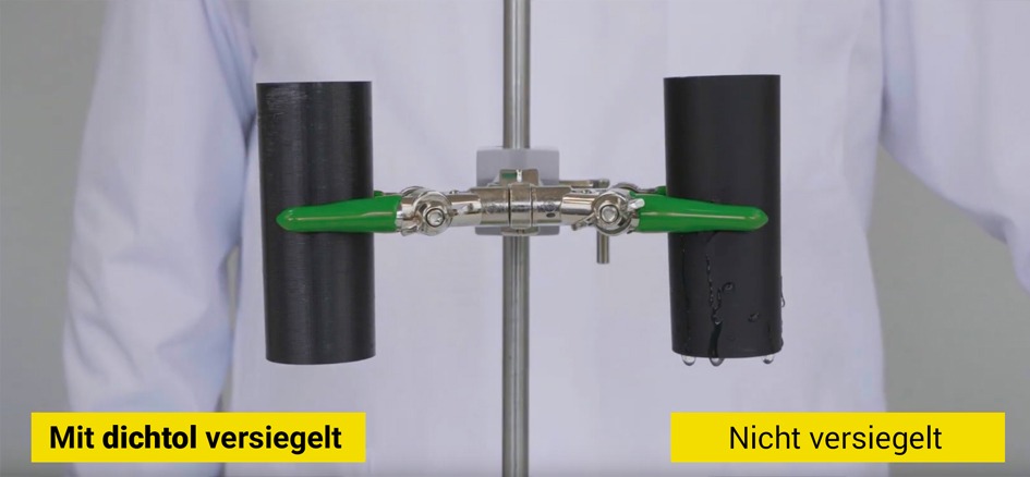 Das Polymersystem dichtol AM Hydro lässt sich einfach streichen, injizieren oder tauchen und verschließt Poren bis zu einem Durchmesser von 0,2 Millimetern. Die Imprägnierung der 3D-gedruckten Teile erfolgt mit dem transparenten dichtol AM Hydro manuell, ohne zusätzliche Maschinen oder Geräte. Auch schwer zugängliche Stellen werden mit dem Hochleistungspolymer sicher gas- und flüssigkeitsdicht abgedichtet.