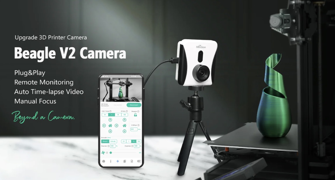 Der Albtraum eines jeden Makers, nach Hause kommen und statt einem schicken 3D-gedruckten Objekt befindet sich auf dem 3D-Drucker nur Filamentsalat. Um das zu verhindern, gibt es 3D-Drucker-Kameras. Ein neues Modell dieser Kategorie ist die Beagle V2 Kamera vom Hersteller Mintion. Die Beagle V2 Kamera bietet die Überwachung des zu druckenden Objekts über eine kleine kompakte Kamera, die mit einem praktischen Tripod geliefert wird und einfach in der Handhabung ist.