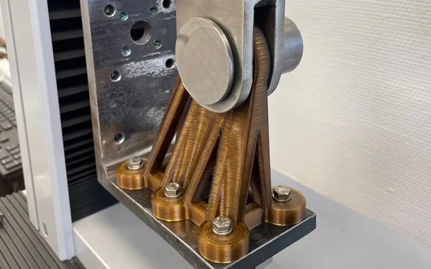 Das Team simulierte die Komponentenleistung in Hexagons Digimat AM-Software. Es sagte einen Bruch über mehrere Schichten statt über eine einzelne Schicht hinweg voraus. Nachdem es 432 kg standgehalten hatte, brach es an zwei Stellen durch mehrere Schichten, wie es von Digimat angekündigt wurde. Da die Komponente nicht nur durch Schweißnähte zwischen den Schichten brach, konnte das Team validieren, dass das Z2 Polyimid eine extreme Isotropie für FDM-Polymerteile aufweist.