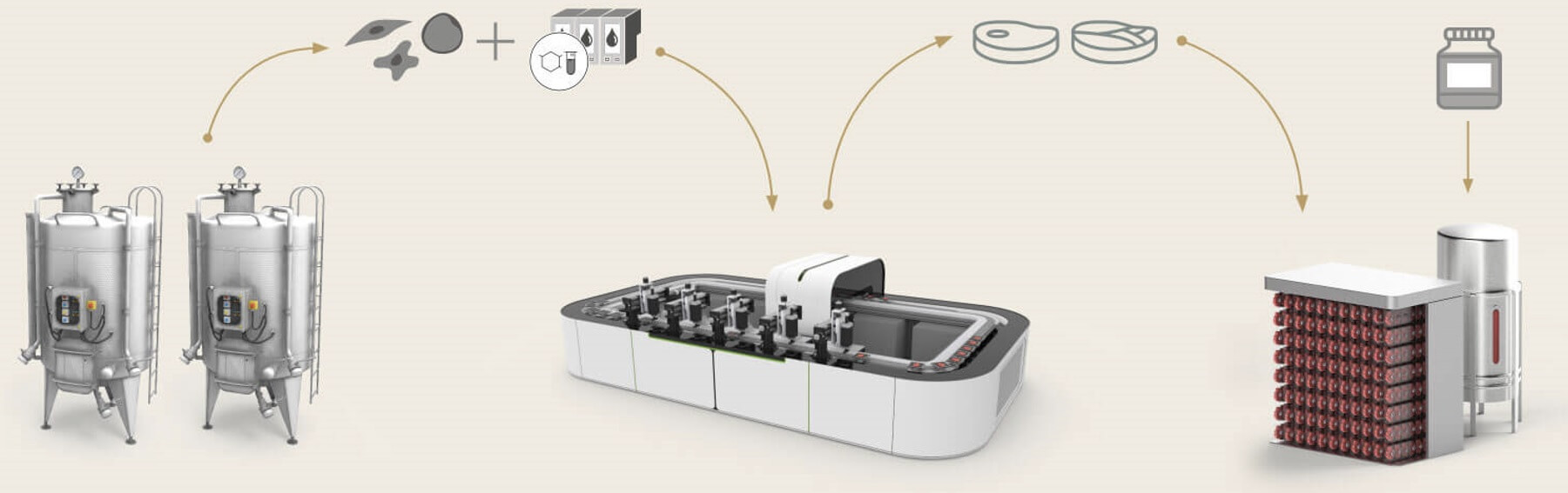 Der 3D-Druck von kultiviertem Fleisch hat das Interesse vieler Unternehmen geweckt, weshalb der logische nächste Schritt die Entwicklung und günstige Skalierung von mehr Produktionskapazitäten sowohl in Bezug auf die Materialherstellung (Zellkulturen) als auch auf die Herstellungsprozesse (Bioprinting) ist. Die Biotinte entsteht bei Steakholder Foods aus ausgewählten Zelllinien und einzigartigen Gerüstmaterialien. Diese wird in einen 3D-Drucker geladen, der in wenigen Minuten ein ganzes Stück Fleisch exakt einem digitalen Design nachbildet.