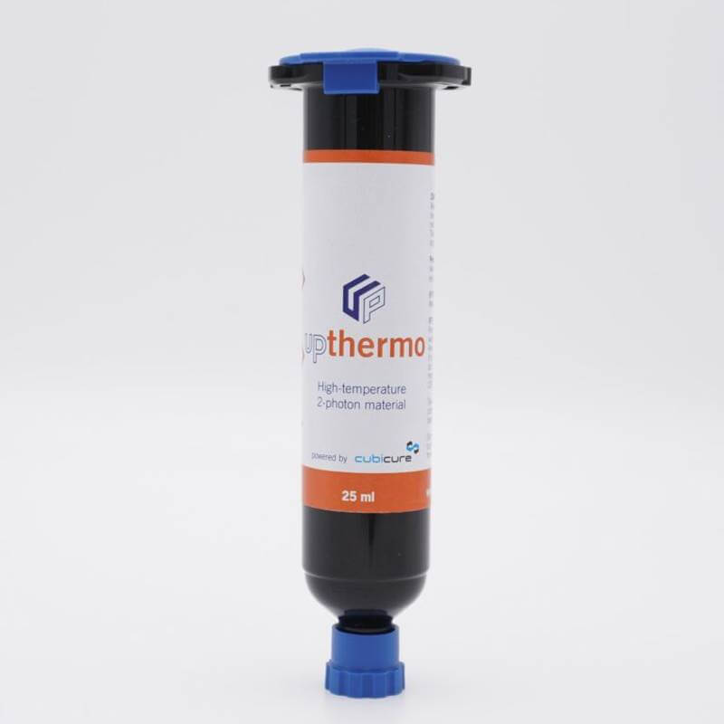 Das ab sofort erhältliche Material UpThermo ist bis zu 300 Grad Celsius formbeständig (HDT-B, die Prüfkörper wurden mit einer Länge von 35 mm gedruckt). Dieser für ein 2PP 3D-druckbares Material bisher unerreichte Wert erlaubt den Einsatz überall dort, wo höhere Temperaturen herrschen und höchste Präzision erforderlich ist. So sind Bauteile für die Elektroindustrie eines der möglichen Einsatzgebiete des Materials. Voraussetzung für diese Innovation war die von der Cubicure GmbH entwickelte und patentierte Hot Lithography Technologie. Diese erlaubt die Verarbeitung hochviskoser Materialien im Präzisions-3D-Druck und schafft dadurch Bauteile mit ungeahnter Materialqualität.