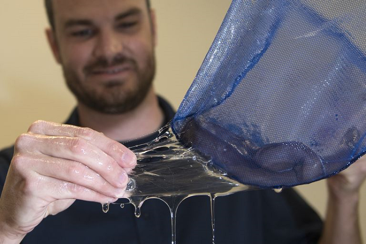 Das Material ist eine Kombination von Polymeren und Agar-Geliermittel. Es kann in jede Form und Größe gedruckt werden. Den Abbau des Materials genau zu kontrollieren ist noch nicht möglich.