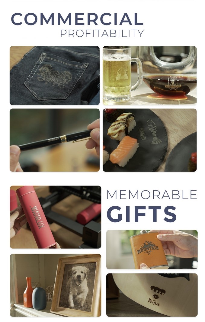 Über das Handy oder den PC kann der Anwender sein Werk im Vorschaumodus betrachten. Ein Lichtfleck auf der Objektoberfläche bewegt sich mit dem Laserkopf und umreißt die Größe und Position des ausgewählten Musters. Die Platzierung kann nach Bedarf angepasst werden. Abstandshalter ermöglichen den 3D-Druck auf größeren Objekten und reduzieren Platzprobleme. Mithilfe von Drehrollern ist der L3 sogar in der Lage, Eier zu gravieren.