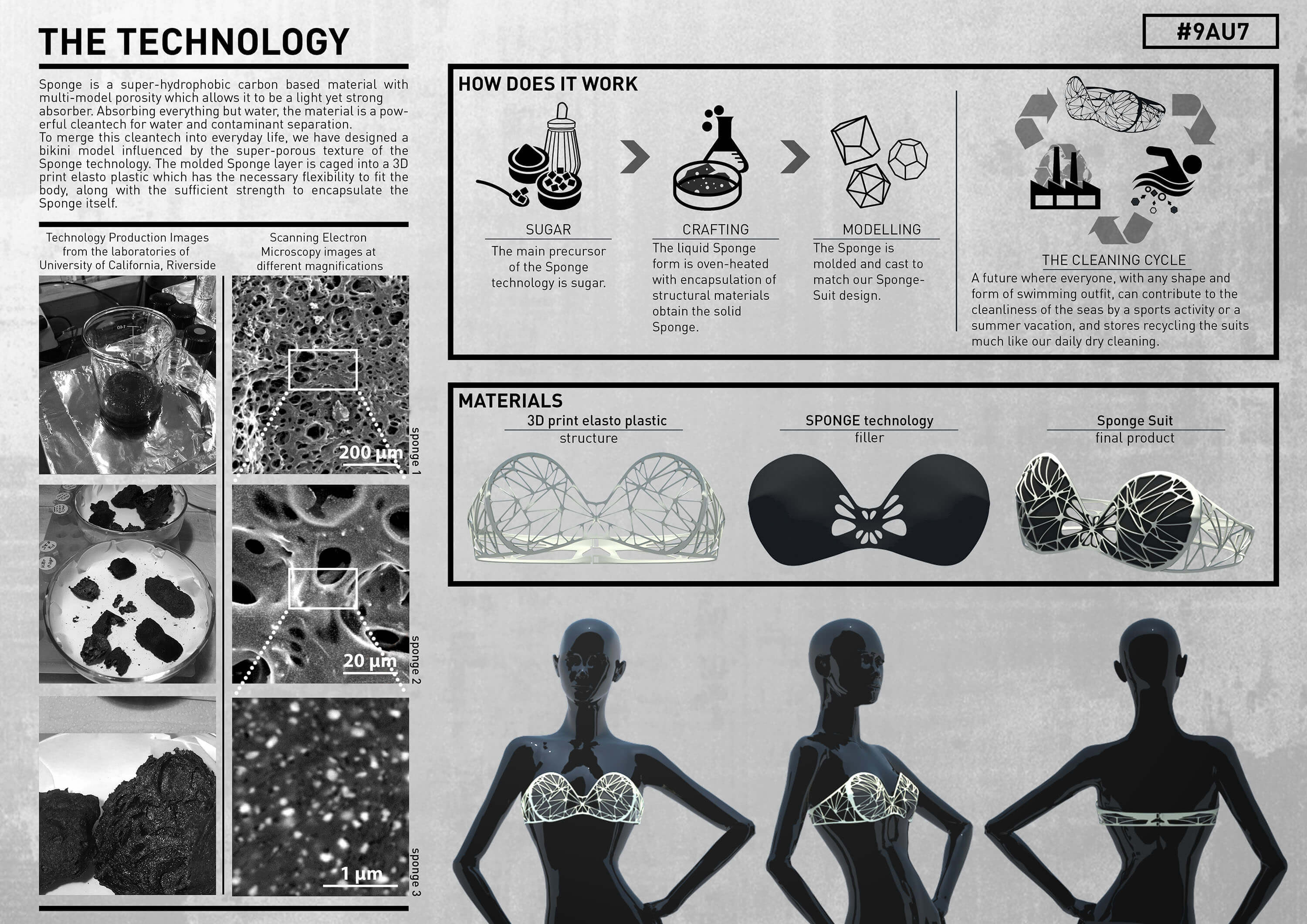 Entwickelt wurde der Sponge-Bikini für einen Wettbewerb zum Thema „Wearable Technlogy Competition“ und ist (bislang noch) nicht im Handel erhältlich. Das innovative Füllmaterial könnte als Filtersystem in Kläranlagen durchaus Verwendung finden, um verschmutztes Wasser besser filtern zu können.