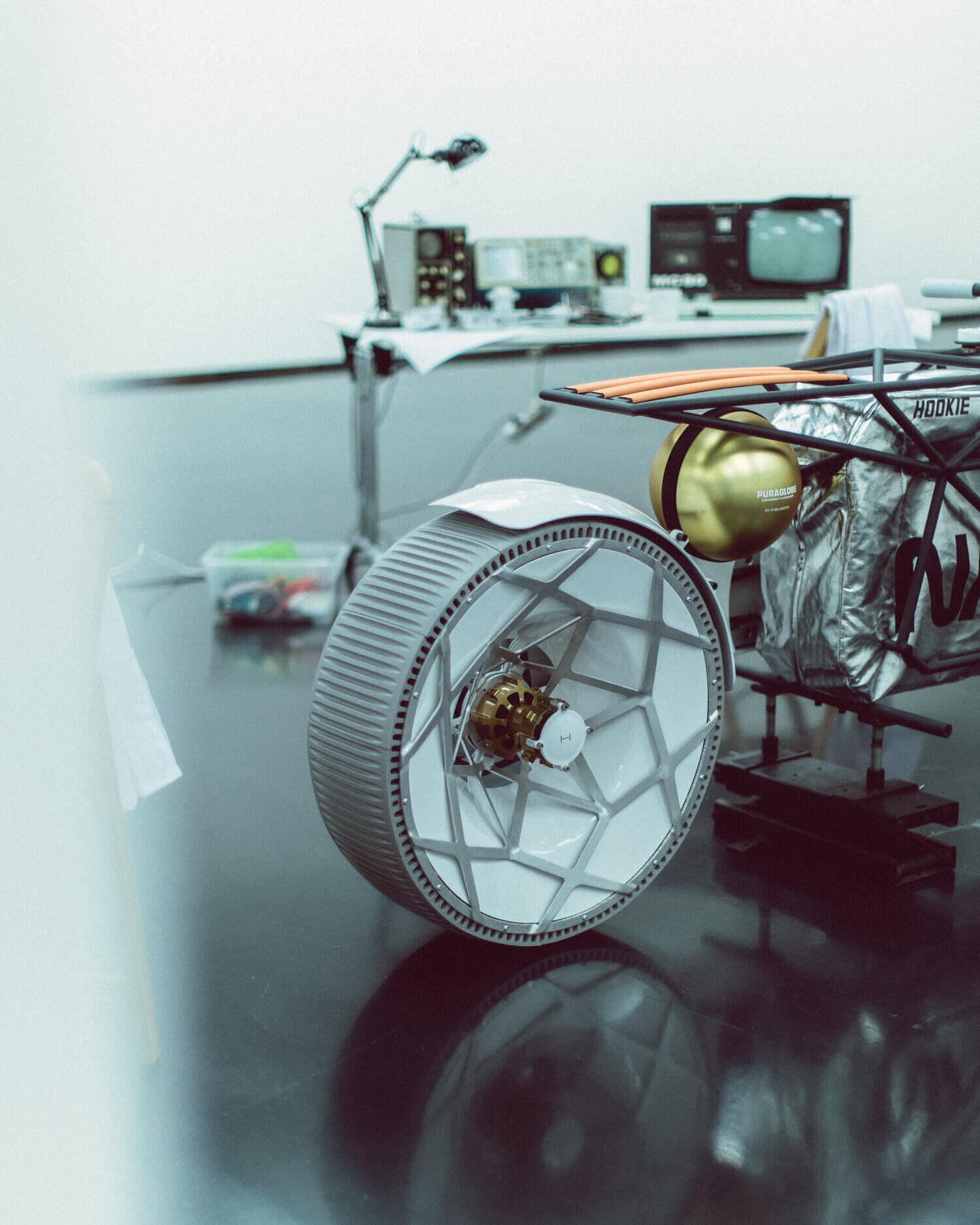 Hookie druckte 12 Polyurethan-Laufflächenmodule in 3D für jedes Rad, die direkt an den Felgen befestigt wurden. Es entstand ein neues Reifensystem, bei dem nur beschädigte Teile anstelle des gesamten Reifens selbst ersetzt werden konnten, was es zu einem nachhaltigen Konzept machte. Neun Partnerunternehmen unterstützten Hookie bei der Herstellung der Tardigrade, benannt nach mikroskopisch kleinen Tieren, die auch unter widrigsten Bedingungen im Weltraum überleben.