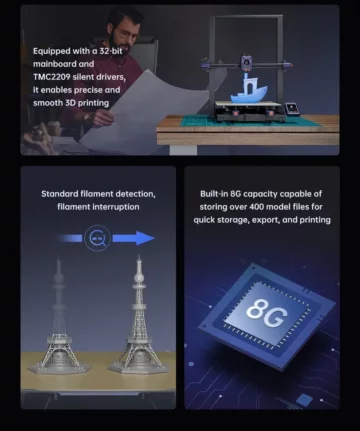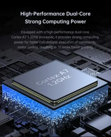 Eine der herausragenden Neuerungen ist der leistungsstarke 1,2 GHz Cortex-A7 Dual-Core Prozessor, der eine schnelle Ausführung von Befehlen und eine effiziente Motorsteuerung gewährleistet. Diese Technologie verdoppelt die Druckgeschwindigkeit im Vergleich zur ersten Ausführung der Kobra 2 Serie.