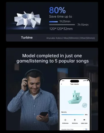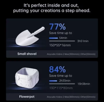 Die Vibration Compensation und Flow Control sind innovative Funktionen, die die Druckqualität durch die Kompensation von Schwingungen und eine verbesserte Schichtqualität steigern. Unterstützt wird der Kobra 2 Max zudem durch die Anycubic App, die Online-Slicing, Fernsteuerung und Unterstützung für Videoaufnahmen und Zeitraffer-Videos bietet.