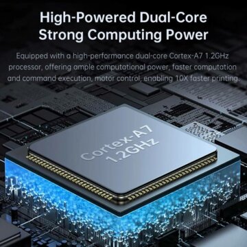 Mit seinem hochleistungsfĂ€higen Dual-Core Cortex-A7 1.2GHz Prozessor bietet der Kobra 2 Plus starke Rechenleistung fĂŒr schnelle Berechnungen und BefehlsausfĂŒhrungen. Die Vibration Compensation-Funktion sorgt fĂŒr eine prĂ€zise Bewegungskontrolle, die Resonanzlinien eliminiert und die DruckqualitĂ€t steigert. Ein weiteres Highlight ist das 4,3-Zoll groĂe farbige Touchscreen-Display, das eine intuitive Bedienung und einfache Steuerung ermöglicht.
