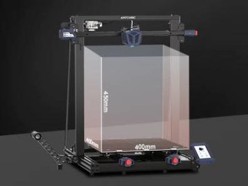 Der Anycubic Kobra Max bietet einen Bauraum von 450 x 400 x 400 mm und ist mit der neuen LeviQ-Technologie ausgestattet. Diese sorgt für eine automatische und äußerst präzise 25-Punkte-Nivellierung und gleicht Unebenheiten auf dem Heizbett aus. Der Anycubic Kobra Max lässt sich in nur 10 Minuten zusammenbauen. Der verwendete Bowden-Extruder sorgt für schnellere, gleichmäßigere und so auch hochwertige Druckergebnisse. Auf der hochwertigen Druckplatte aus Glas, beschichtet mit Siliziumkarbid, haften 3D-Druck-Objekte sehr gut. Kühlt die Platte ab, lassen sich die Objekte problemlos abnehmen. Der 3D-Drucker verarbeitet unter anderem flexible Filamente wie TPU. Die Druckplatte ist korrosionsfrei und benötigt weniger Wartungsaufwand.