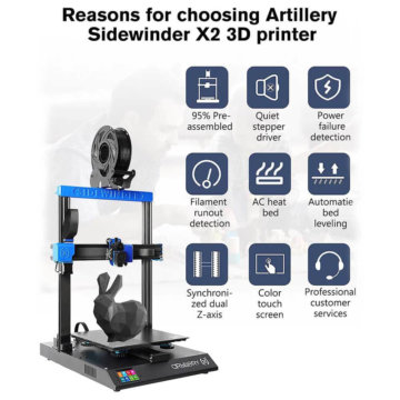 Als Nachfolger des beliebten Artillery Sidewinder X1 zeichnet sich der Artillery Sidewinder X2 FFF-3D-Drucker durch smarte Weiterentwicklungen und neue Features aus. Sein Vorgänger X1 gilt seit 2020 als der mit Abstand am besten verkaufte und beliebteste 3D-Drucker in Deutschland. Daher ist es für viele spannend, was der X2 so kann.