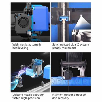 Ausgestattet mit einem brandneuen Extruder aus Titan mit einer Volcano-Düse, die gleichmäßig und schnell extrudiert, gewährleistet der Sidewinder hochpräzise Drucke. Das 32-Bit-Motherboard im X2 wurde vom Hersteller selbst entwickelt und zeichnet sich durch Erweiterbarkeit, leistungsstarke Rechenleistung und hohe Stabilität aus.