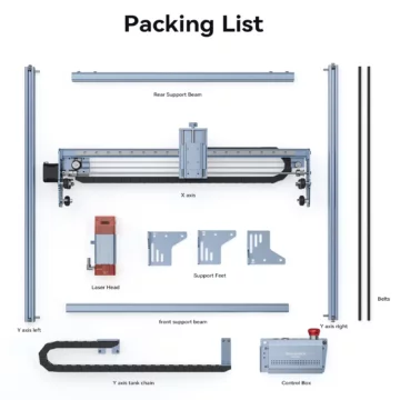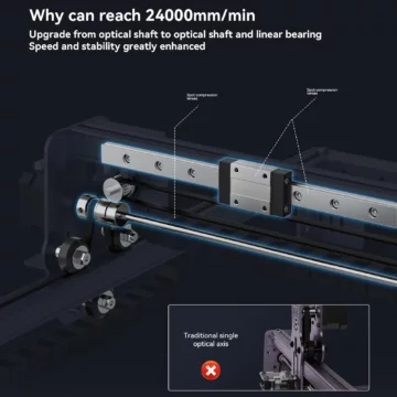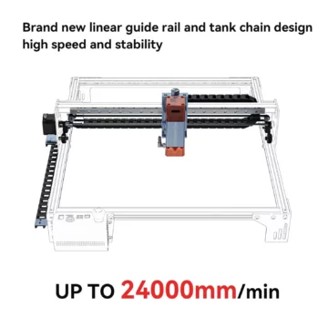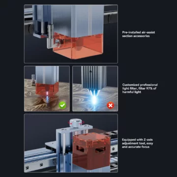 - Hohe Genauigkeit: Mit einer neuen 50mm Brennweiten-Lichtquelle verbessert der Gravierer sowohl die Schneideffizienz als auch die Qualität und Präzision. Ein neues Fokusanpassungsgerät ermöglicht eine präzisere Einstellung und kann Materialien unterschiedlicher Dicke aufnehmen.