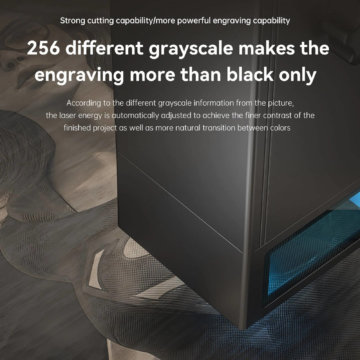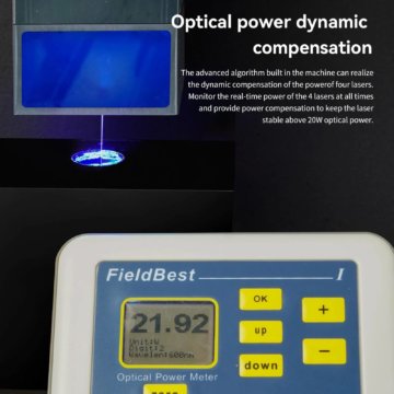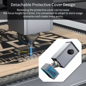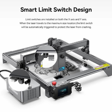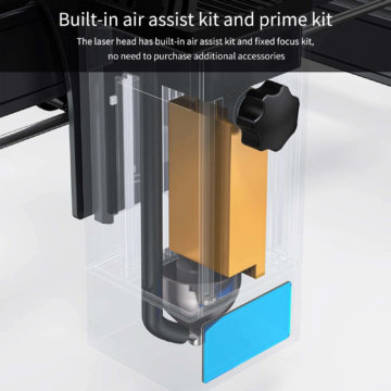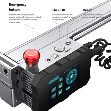Der Laser ist mit einer Panorama-Filter-Schutzabdeckung ausgestattet, welche 97 Prozent des austretenden UV-Lichts filtert. Vor dem Beginn einer Gravur muss der Fokus nicht mehr eingestellt werden. Der Fokussierbereich liegt bei 0,08 x 0,1 mm. Der Laser erreicht eine Sintertemperatur von 1200 bis 2400 Grad Celsius. Eine schnelle Längenmessung ist mit den auf der X- und Y-Achse aufgebrachten Skalen möglich. Bei unerwarteten Problemen kann die Maschine jederzeit angehalten und später fortgesetzt werden. Eine Offline-Gravur ist mit Hilfe des 32 Bit Motherboards und SD-Karte ebenfalls möglich.